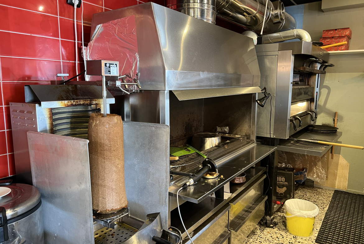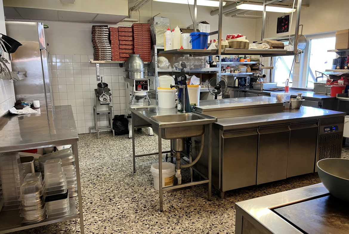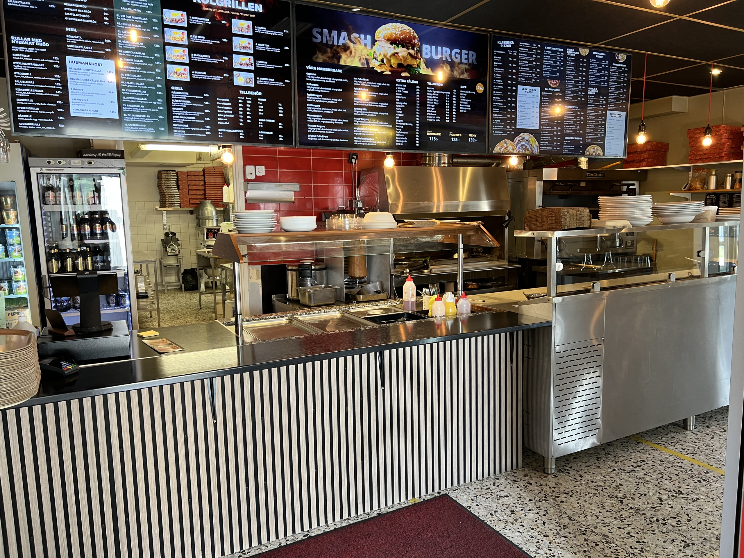 Pizza, kebab, kolgrill, hamburgare och sallader – allt tillagat i ett fullt utrustat kök med nyinstallerad kolgrillventilation.