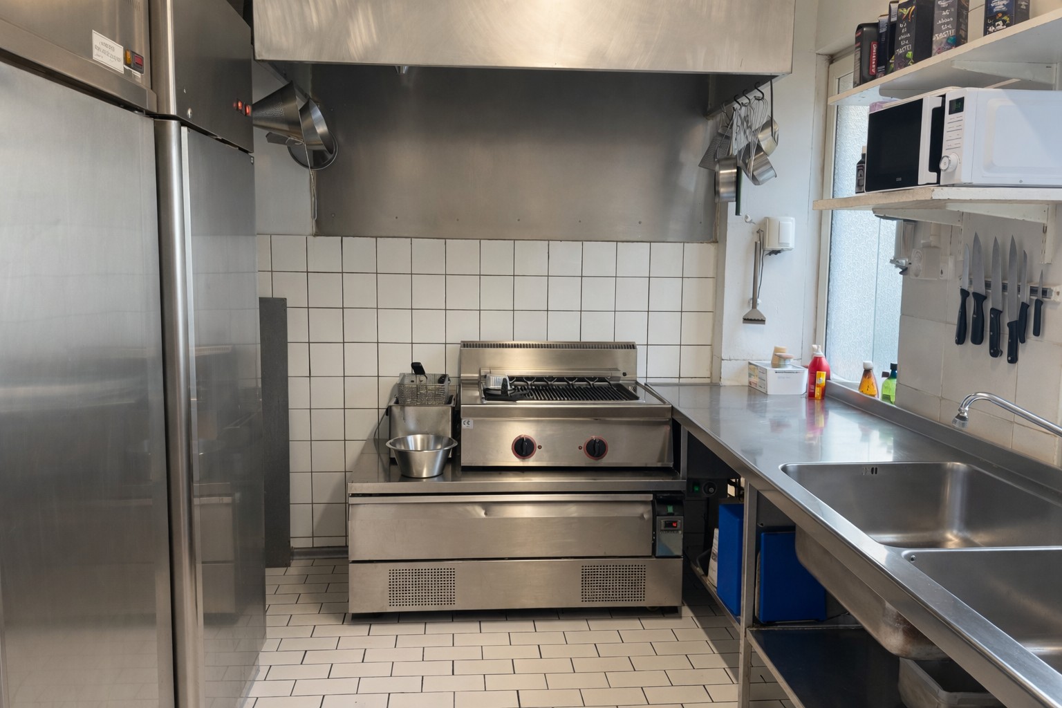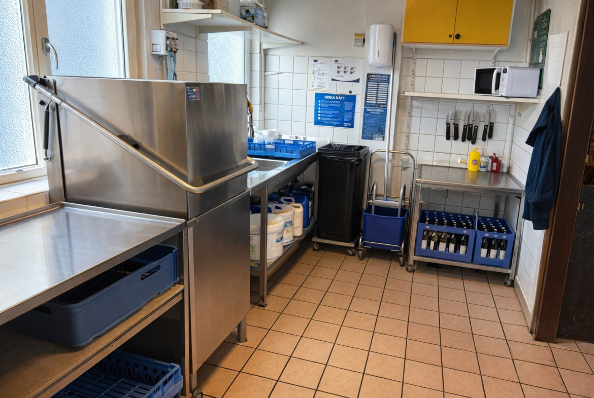 Lokalen är utrustad med bra restaurangventilation samt fettavskiljare. Ingen gas finns. Inventarierna är i mycket gott skick och köket är välutrustat för fortsatt drift.